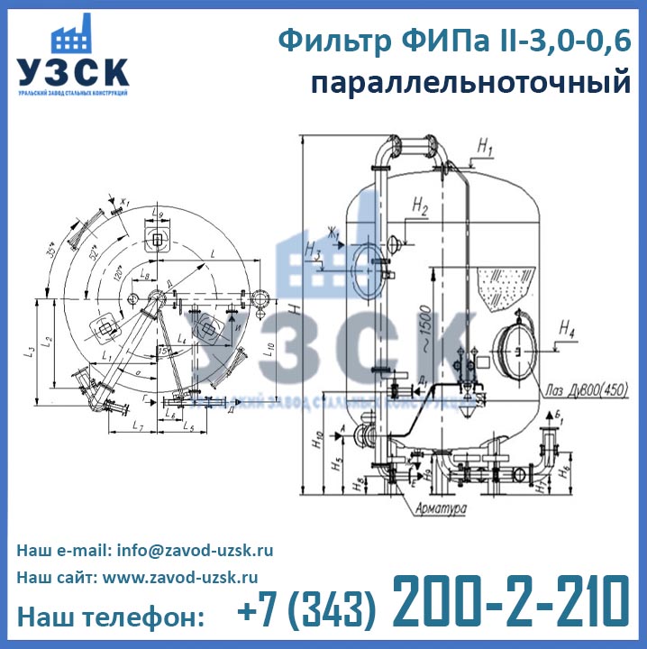 Актуальные цены на ФИПаII-3,0-0,6 в Петрозаводске Вы можете уточнить в отделе продаж Уральского Завода Стальных Конструкций (производитель ионитных фильтров), для этого заполните форму заказа внизу страницы.