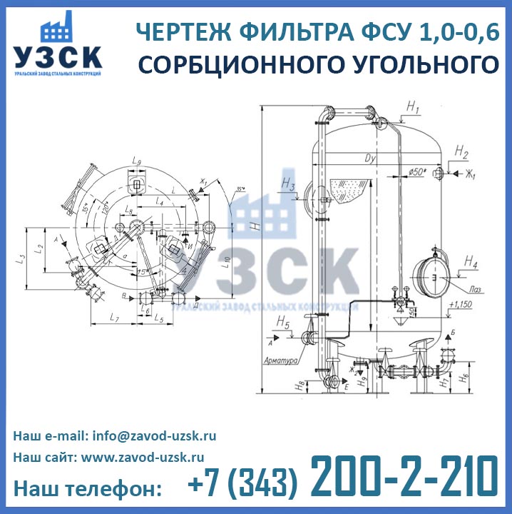 Наш завод (Уральский завод стальных конструкций) является производителем угольных фильтров, сам осуществляет изготовление и реализацию выпускаемой продукции. Приобретая фильтры ФСУ-1.0-0.6 в Петрозаводске от производителя, Вы приобретаете оборудование без наценок всевозможных посредников, а также значительно экономите свое время. Фильтры ФСУ1.0-0.6 завода УЗСК – это гарантия качества, кратчайшие сроки изготовления и цена, которая Вам понравится.