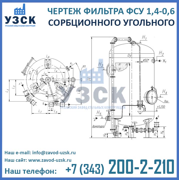 Если вы ищете фильтры ФСУ-1,4-0,6 в Петрозаводске от изготовителя, то Вы на правильном пути! Уральский завод стальных конструкций – непосредственный производитель сорбционных фильтров ФСУ, предлагающий самые выгодные цены на ФСУ-1.4-0.6 в Петрозаводске. По окончании процесса производства угольные фильтры проходят гидравлические испытания пробным давлением 0,9 МПа на аттестованном гидростенде, находящимся в собственности завода УЗСК. Мы гарантируем высокое качество выпускаемой продукции, и в этом уже убедились ведущие предприятия промышленного сектора России и стран ЕАЭС (см. раздел «Наши клиенты»).